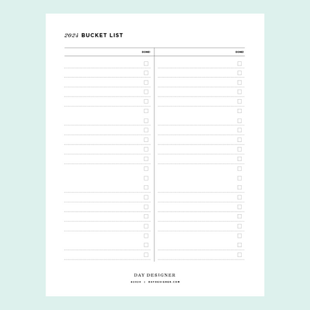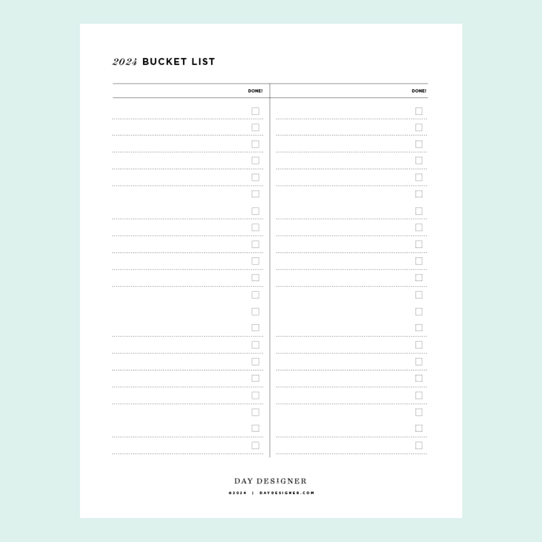 Source : daydesigner.comPrintable Bucket List, 2025 Year Activities, Life Goals Planner